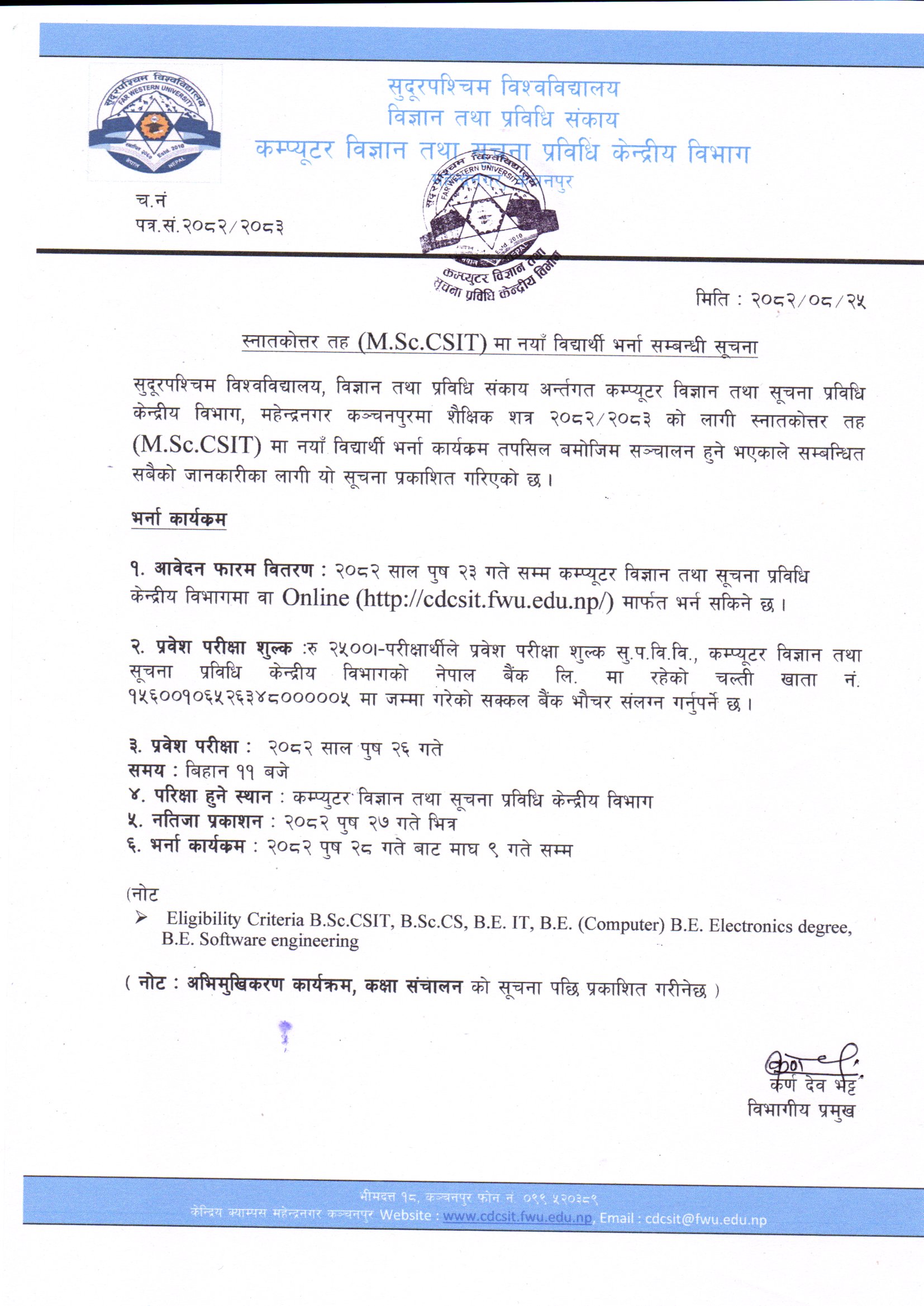 Mid Term Notice of B.Sc.CSIT Second Semester 2081 Batch